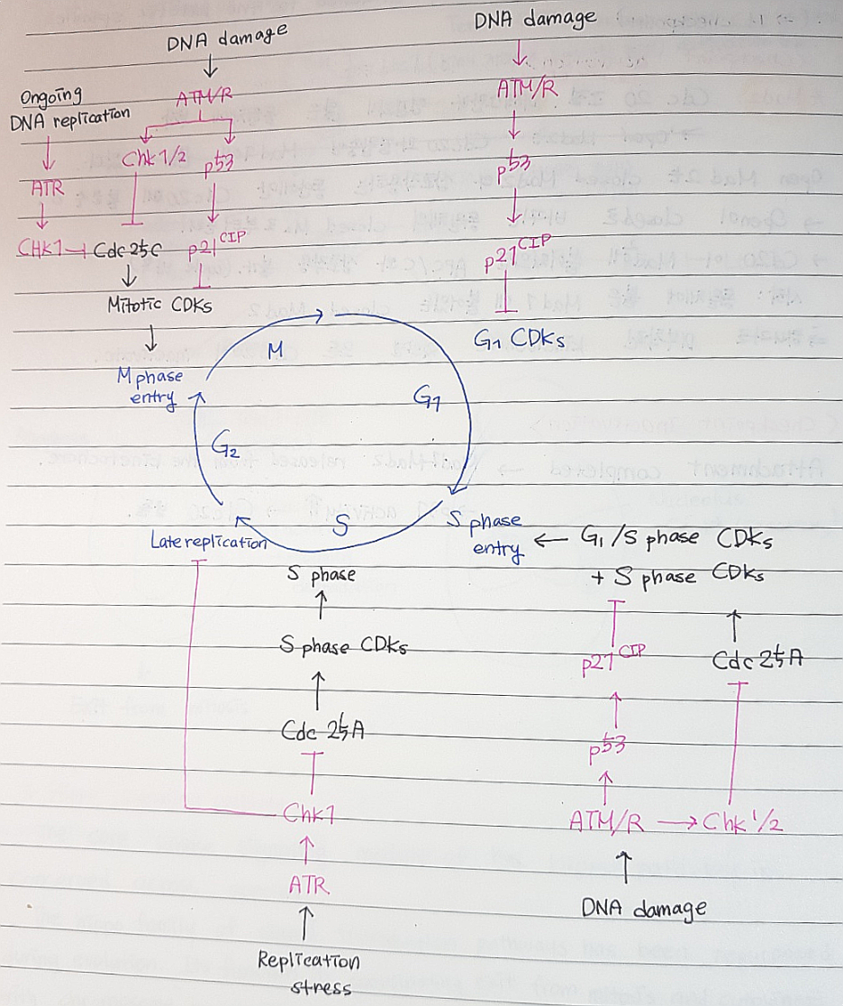 *Sensor 는 특정 세포주기의 과정에서 나타나는 결함들을 감지하고 그에 따라 신호 전달 경로를 활성화시킨다.